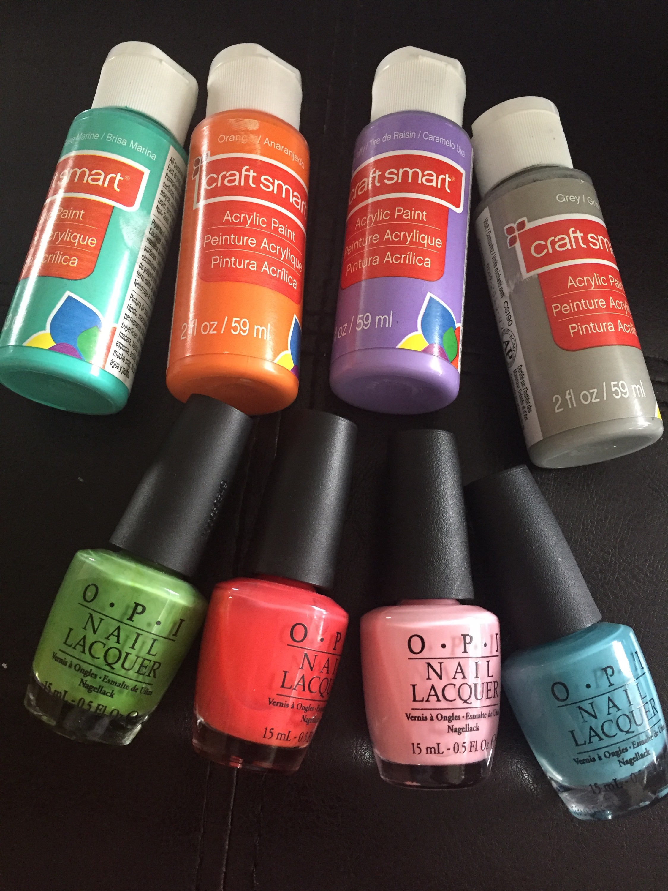 craftsmart acrylic paint – “Ocean Breeze”, “Orange”, “Grape Taffy”, “Grey”