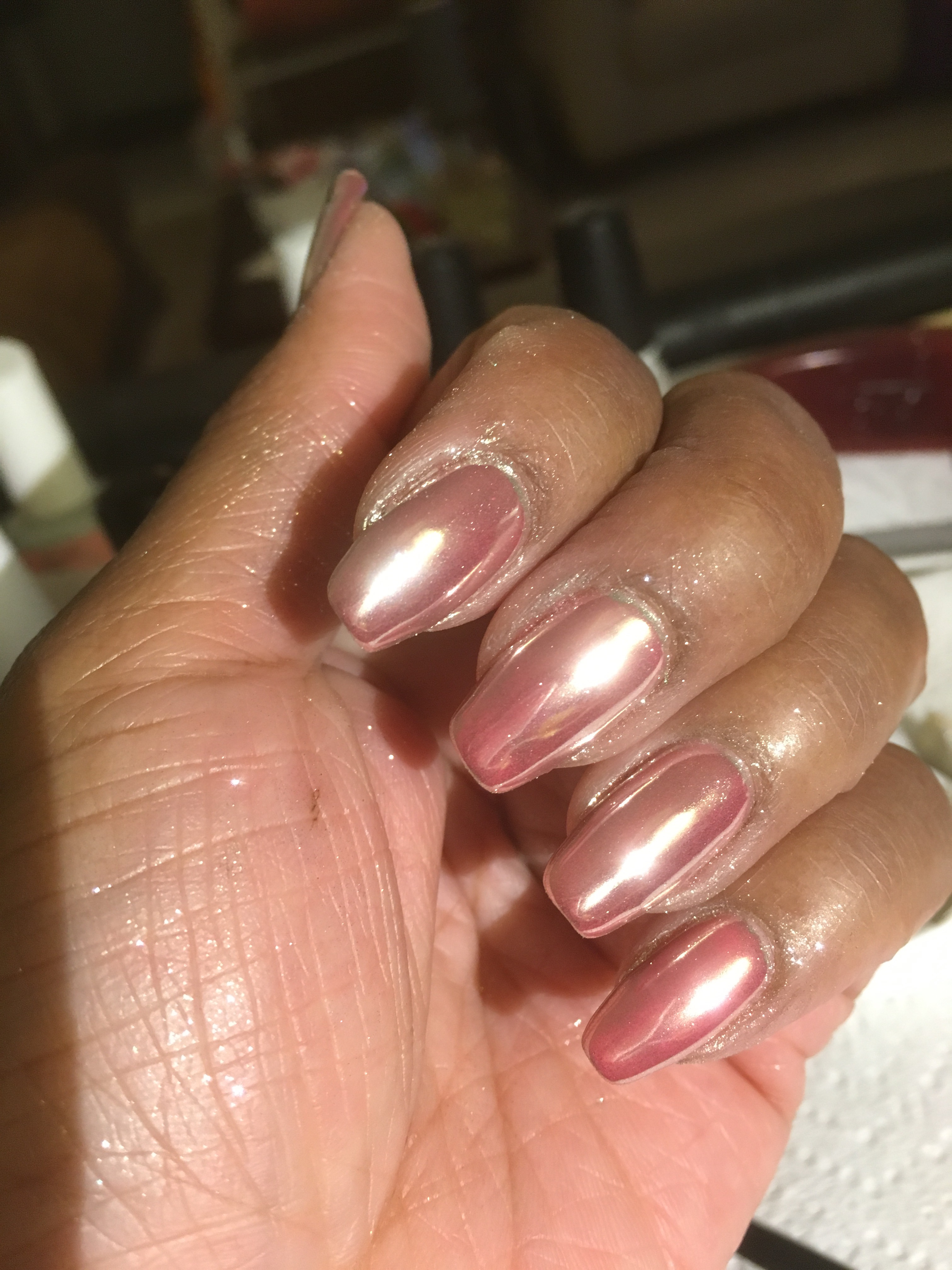 And then I applied the mirror effect powder. Topcoated. Then gaped lovingly at my fingernails.  😊