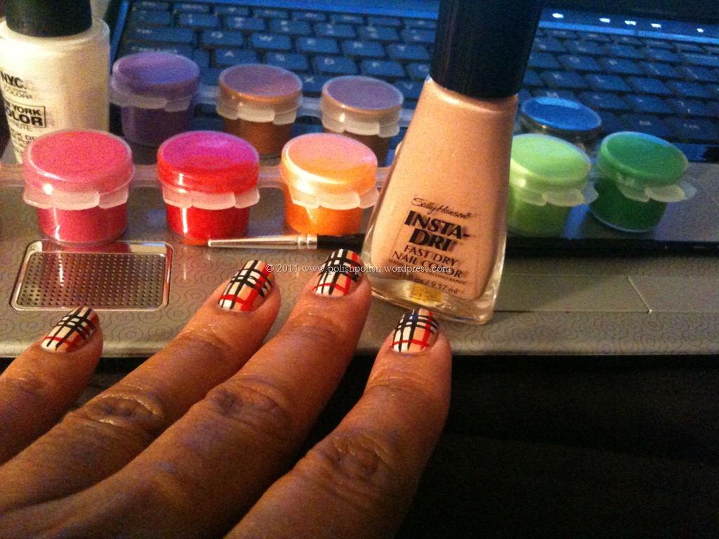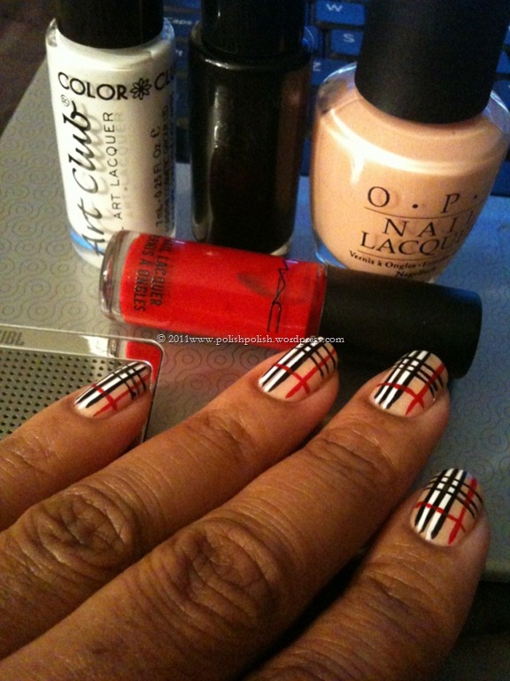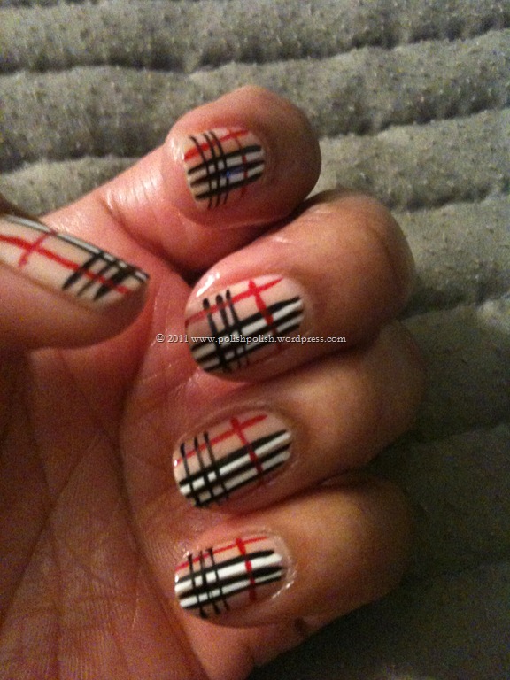 As tired as I was after working a 14.5 hour day at work… Burberry moved me. lol. And I wanted it on my nails. This was my first attempt. But trust me, I’ll be practicing this again until I get straight lines, and a better aspect ratio. :-). I will post update pics after I re-do this a few more times….