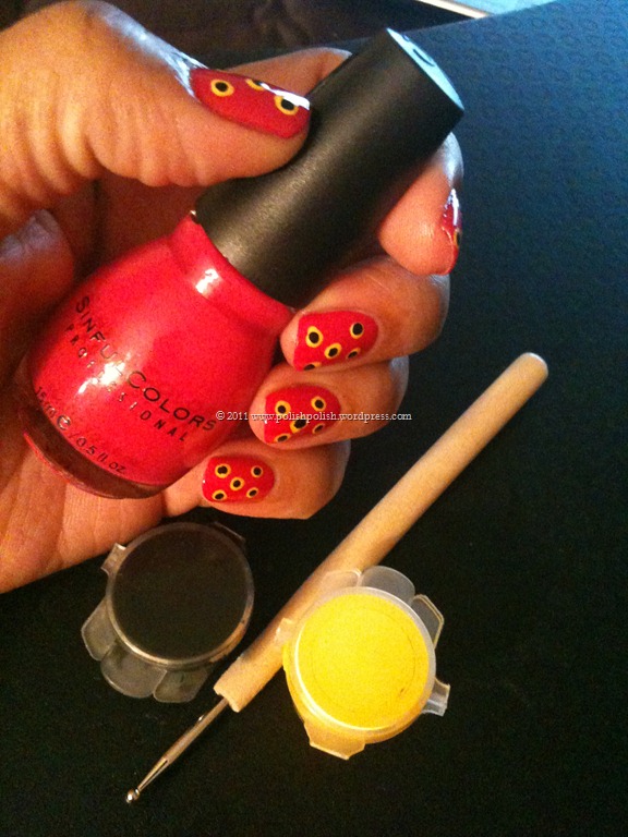Sinful Colors “Feeling Great” was the perfect base for the yellow-trimmed black dots of acrylic paint.