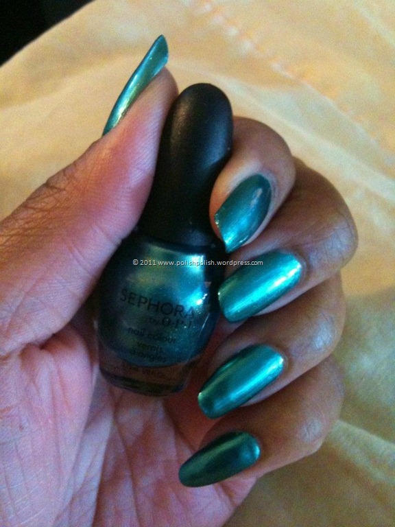 {this blue made me do a double-take in the mirror when I saw my hand!! Pretty! – but Debbie “thumbs down-ed” it. She’s obviously blind. lol}