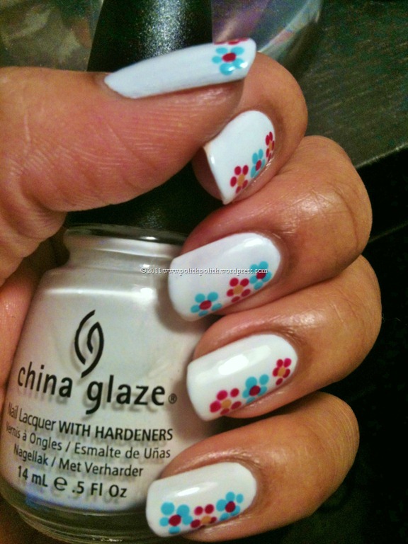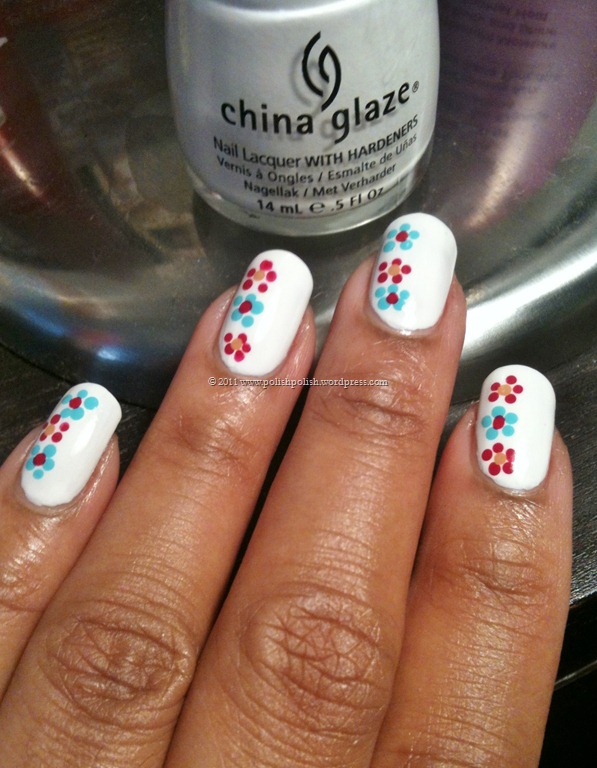 China Glaze “White On White”acrylic paint dot flowers