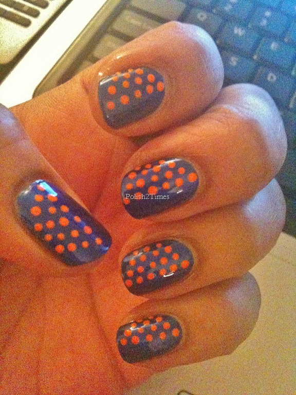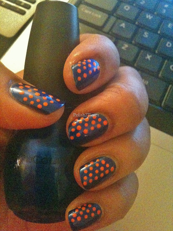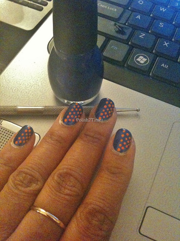 Still Blue Apr16 by Cheryl Cheryl Sinful Colors “Midnight Blue”w/orange acrylic paint dots I can’t seem to pinpoint what the dots remind me of, but it will probably come to me….eventually. Hopefully. lol.