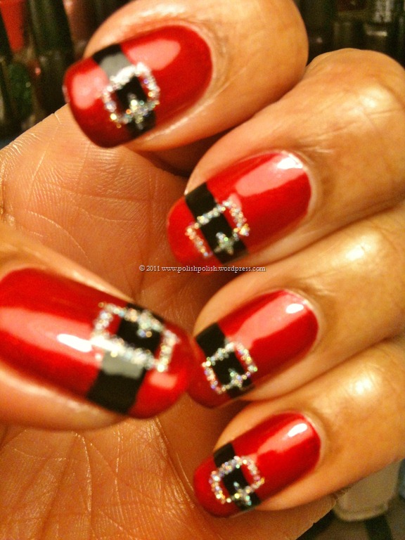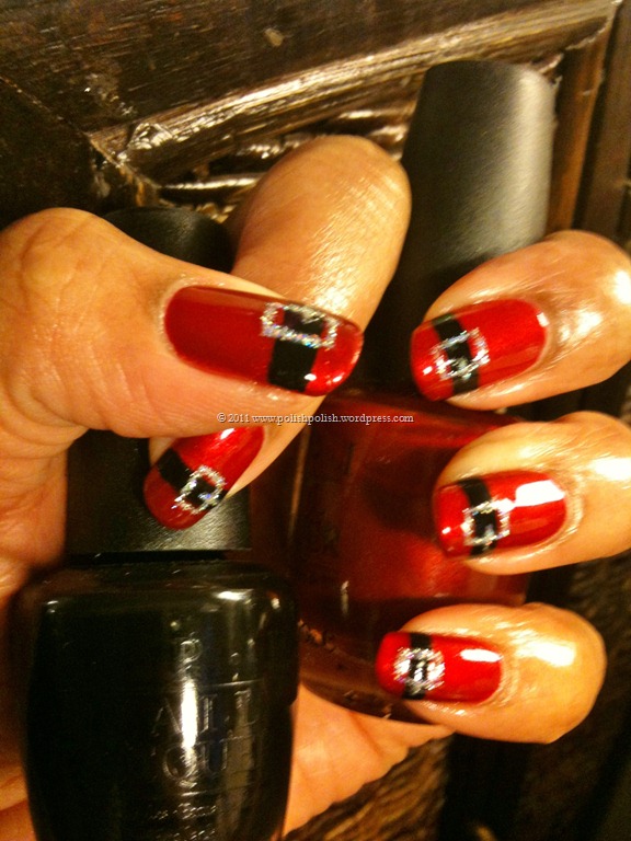 So, I used my favorite… OPI “I’m Not Really A Waitress”… striped OPI “Black Onyx across and made a “Glitter Hologram” buckle….