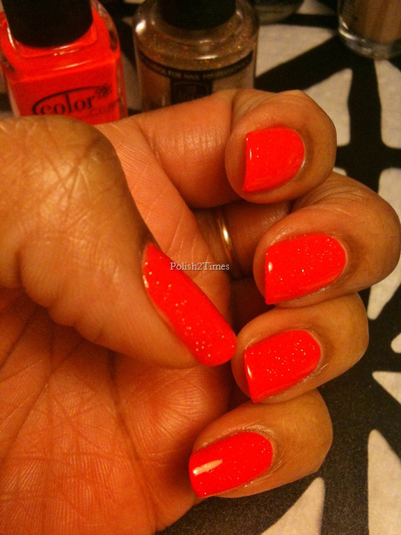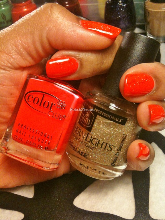 I used the gold glitter holographic top coat.  I just can’t give up glitter completely.  lol.