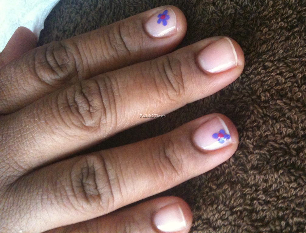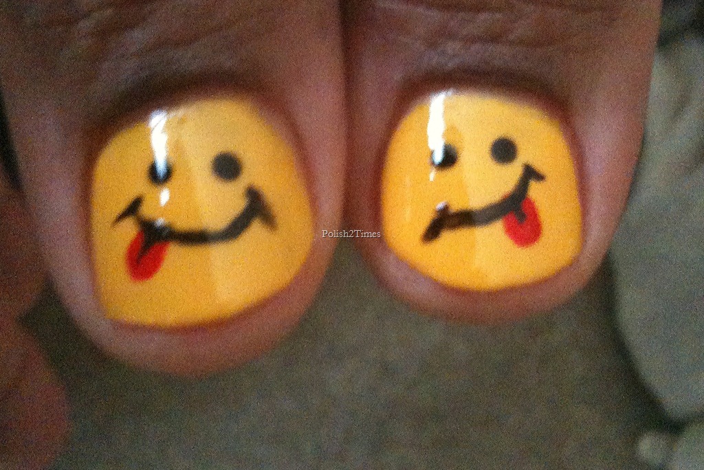 And I practiced a little on my crazy sister’s nails.  Yes, crazy.  This crazy girl didn’t even want color on her nails (WHAT?!?!)….. well, with the exception of her thumbs.  And she wanted smiley faces with their tongues sticking out on those.  She LOVED the one I made a mistake on…. because it looks like a smirk expression instead of a smile.  SMH.  I love my sister Smile.