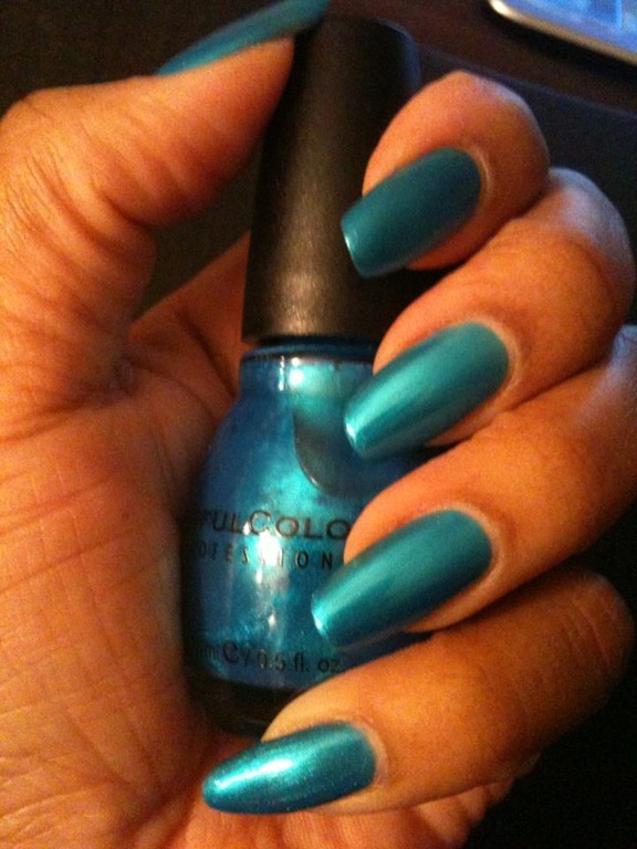 {this blue made me do a double-take in the mirror when I saw my hand!! Pretty!  – but Debbie “thumbs down-ed” it.  She’s obviously blind. lol}